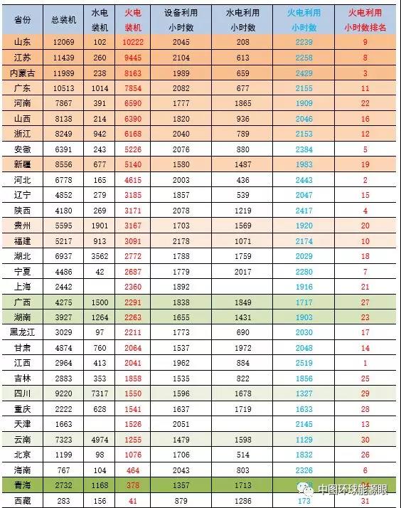 ?綜合各省火電裝機(jī)排名以及火電利用小時(shí)排名情況,做出以下判斷: