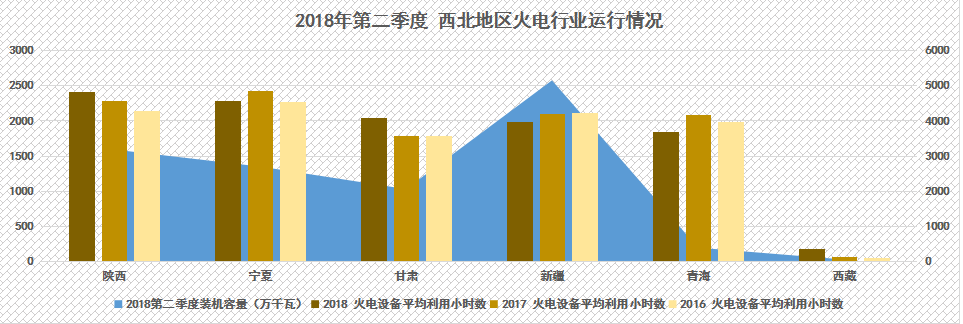 2018上半年,我國(guó)西北地區(qū)火電裝機(jī)容量增長(zhǎng)地區(qū)差異較大。與去年同期相比,其中新疆、寧夏,陜西增幅較大,分別達(dá)到531萬(wàn)千瓦、386萬(wàn)千瓦、135萬(wàn)千瓦。其余省份基本與去年保持持平,而青海則出現(xiàn)了一定規(guī)模的下滑。