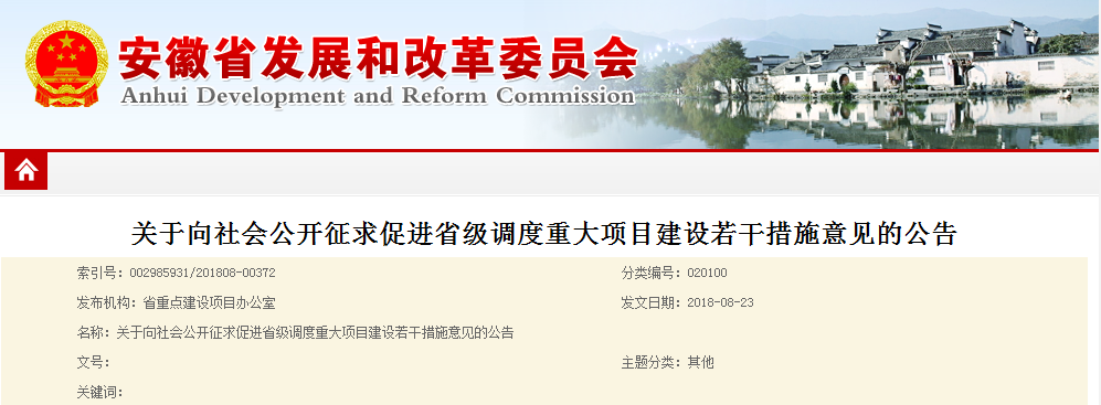 日前,安徽發(fā)改委發(fā)布《關(guān)于促進(jìn)省級調(diào)度重大項(xiàng)目建設(shè)的若干措施(征求意見稿)》,原文如下:
