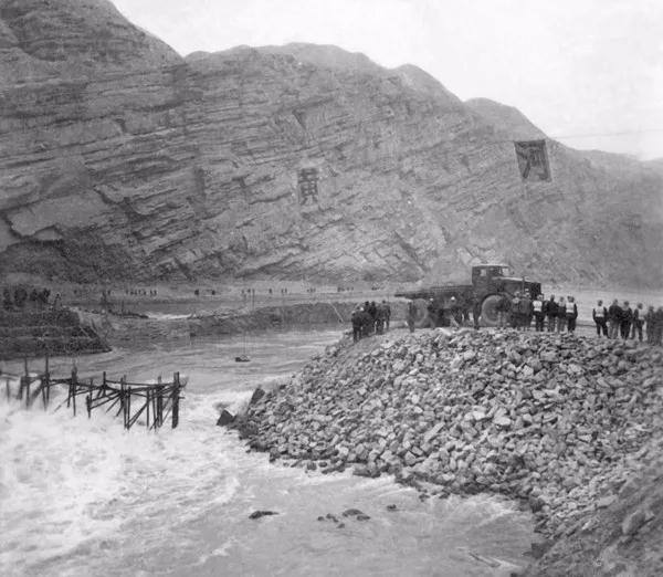 共和國的第一代水電人只用了20天就完成489米的草土圍堰,保證了右岸溢流壩基坑施工。