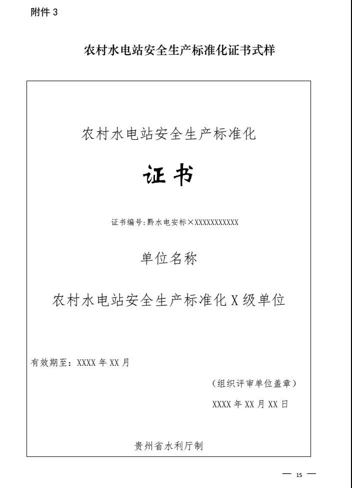 貴州省水利廳 : 關(guān)于印發(fā)《貴州省農(nóng)村水電站安全生產(chǎn)標(biāo)準(zhǔn)化達(dá)標(biāo)評級實(shí)施細(xì)則》的通知