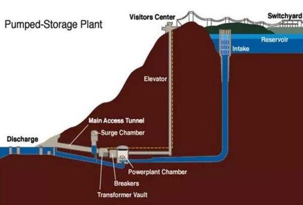 2、放水發(fā)電:系統(tǒng)負(fù)荷高時,將上庫的水放下來推動水輪發(fā)電機組(水輪機+發(fā)電機)發(fā)電,以補充系統(tǒng)中電能的不足。
