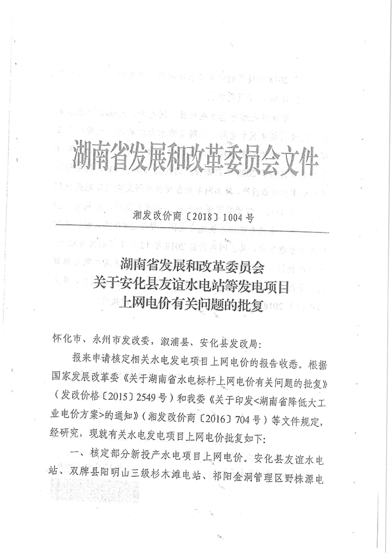 17個(gè)水電項(xiàng)目!湖南省發(fā)改委關(guān)于安化縣友誼水電站等水電站上網(wǎng)電價(jià)的批復(fù)
