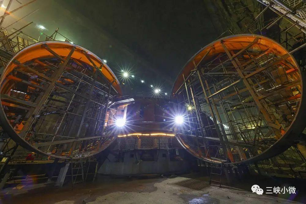 沿著四通八達(dá)的地下交通洞蜿蜒行進(jìn),到達(dá)左右岸地下電站后可以看到,自開挖向金屬結(jié)構(gòu)安裝轉(zhuǎn)序后,兩岸地下主廠房迎來了許多發(fā)電用的“大家伙”。目前,左右岸主廠房肘管全部安裝完成,錐管安裝基本完成,座環(huán)和蝸殼安裝工作陸續(xù)啟動(dòng),金屬結(jié)構(gòu)安裝環(huán)節(jié)在向機(jī)電交面的路程上已經(jīng)走過大半;此外,左右岸進(jìn)水塔、引水洞、尾水洞澆筑,引水壓力鋼管安裝等工作也正同步進(jìn)行。