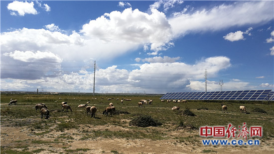圖為羊群和光伏組件和諧共處。經(jīng)濟日報-中國經(jīng)濟網(wǎng)記者劉瀟瀟/攝