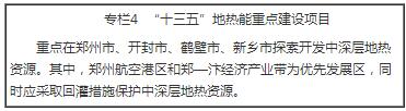 加大地熱能開發(fā)利用研究,完善地熱能開發(fā)利用相關標準、政策、價格等行業(yè)管理體系。以“地熱水循環(huán)利用”為指導原則,積極推進水熱型地熱供暖,進行傳統(tǒng)供暖區(qū)域的清潔能源供暖替代,將水熱型地熱能供暖納入城鎮(zhèn)基礎設施建設中,集中規(guī)劃,統(tǒng)一開發(fā)。按照“因地制宜,集約開發(fā),加強監(jiān)管,注重環(huán)保”的原則,除城鎮(zhèn)地下空間利用規(guī)劃的區(qū)域外,在公共建筑和新建住宅小區(qū)等區(qū)域鼓勵開發(fā)利用淺層地熱能。通過技術進步、規(guī)范管理解決目前淺層地熱能開發(fā)中出現(xiàn)的問題。結合大氣污染治理,重點在鄭州、開封、鶴壁、新鄉(xiāng)等清潔供暖試點城市探索開展地熱能發(fā)電示范項目。到2020年,新增地熱能供暖面積8200萬平方米。