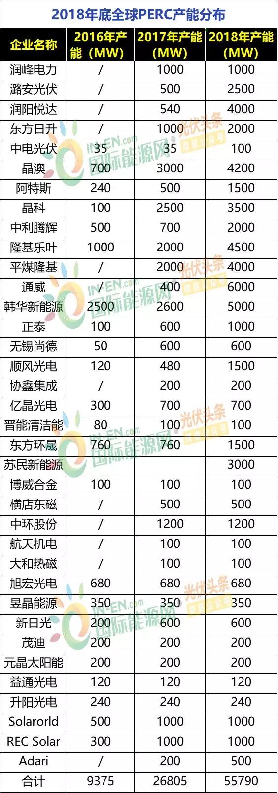 全球共有37家光伏企業(yè)生產(chǎn)PERC電池,國(guó)內(nèi)企業(yè)占26家。近兩年,天合、晶科和通威等一線大廠蜂擁上馬PERC電池產(chǎn)能,隆基也完成向PERC技術(shù)的升級(jí)改造。
