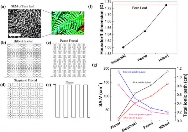 結(jié)合超級電容器,啟用分形而減少激光使用的石墨電極將儲存電荷更久,保持最小的泄漏。這個分形設(shè)計反映了刺羽耳蕨(原產(chǎn)于北美西部)靜脈的自我重復形狀。