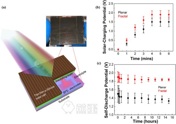 Gu說這個電極是基于這些自我復制的分形,如同雪花中的迷你結(jié)構(gòu),研究團隊利用這種自然設(shè)計從納米級改善了太陽能的存儲技術(shù)。