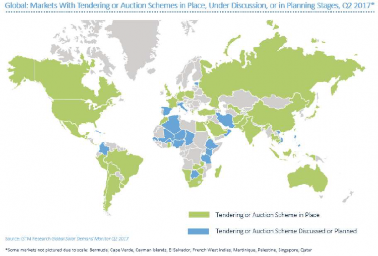 2017年二季度全球太陽能容量拍賣