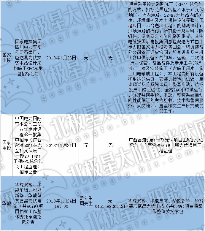 最新國家電投、中廣核、華能16個光伏項目招標(biāo)公告匯總:涉及光伏組件、光伏扶貧等