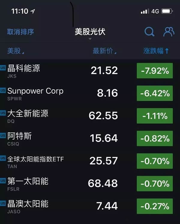 這樣的消息,導致了當天美國整個光伏板塊的下跌: