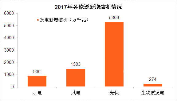 截至2017年底,我國可再生能源發(fā)電裝機(jī)達(dá)到6.5億千瓦,同比增長14%;其中,水電裝機(jī)3.41億千瓦、風(fēng)電裝機(jī)1.64億千瓦、光伏發(fā)電裝機(jī)1.3億千瓦、生物質(zhì)發(fā)電裝機(jī)1488萬千瓦,分別同比增長2.7%,10.5%,68.7%和22.6%??稍偕茉窗l(fā)電裝機(jī)約占全部電力裝機(jī)的36.6%,同比上升2.1個百分點,可再生能源的清潔能源替代作用日益突顯。 新增裝機(jī)方面,2017年全國水電新增裝機(jī)約900萬千瓦;風(fēng)電新增裝機(jī)1503萬千瓦,繼續(xù)保持穩(wěn)步增長勢頭,中東部和南方地區(qū)占比50%,風(fēng)電開發(fā)布局進(jìn)一步優(yōu)化,山東、河南、陜西、山西新增裝機(jī)均超過100萬千瓦;生物質(zhì)發(fā)電新增裝機(jī)274萬千瓦,累計裝機(jī)達(dá)到1488萬千瓦,同比增長22.6%;全年生物質(zhì)發(fā)電量794億千瓦時,同比增長22.7%,繼續(xù)保持穩(wěn)步增長勢頭;受上網(wǎng)電價調(diào)整等多重因素影響,2017年光伏發(fā)電市場規(guī)??焖贁U(kuò)大,新增裝機(jī)5306萬千瓦,其中,光伏電站3362萬千瓦,同比增加11%;分布式光伏1944萬千瓦,同比增長3.7倍。