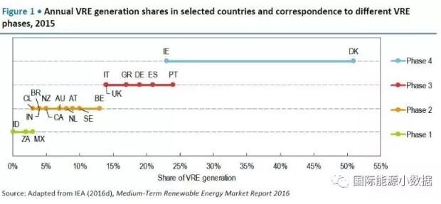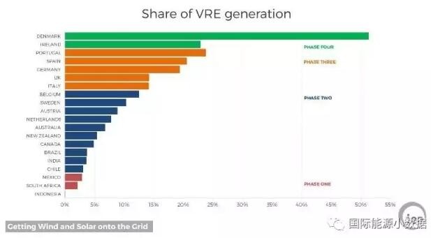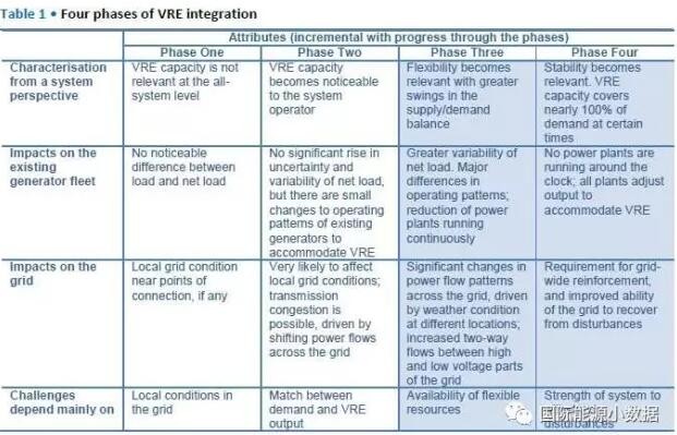 國際能源署發(fā)布報(bào)告Getting Wind and Sun onto the Grid,按照電網(wǎng)吸納間歇性可再生能源(主要是風(fēng)電、光伏)的比例劃分了4個階段:...