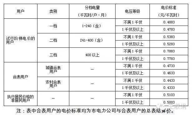 而居民電價(jià)是分檔進(jìn)行征收的,如下表所示。