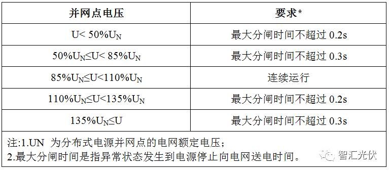 2.逆變器應(yīng)符合國家、行業(yè)相關(guān)技術(shù)標(biāo)準(zhǔn),具備高/低電壓閉鎖、檢有壓自動(dòng)并網(wǎng)功能(電壓保護(hù)動(dòng)作時(shí)間要求見表1;檢有壓85%UN自動(dòng)并網(wǎng))。