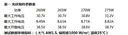 表一 光伏組件參數(shù)表