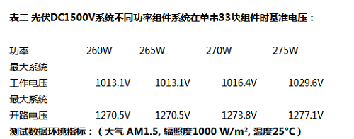 表二 光伏DC1500V系統(tǒng)不同功率組件系統(tǒng)在單串33塊組件時(shí)基準(zhǔn)電壓: