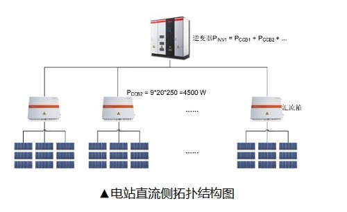 每個組串的面板數(shù)量確定后,根據(jù)匯流箱的接入串?dāng)?shù)我們就可以確定該匯流箱下究竟有多少塊光伏板,而單塊面板的容量已知,從而可以計算出該匯流箱的掛載容量:匯流箱掛載容量(PCCB)=接入組串?dāng)?shù)(N)*每串面板數(shù)*面板標(biāo)稱功率對同一逆變器下不同的匯流箱進行加和,即可得到該逆變器的掛載容量: