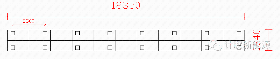 屋頂分布式光伏基礎(chǔ)根據(jù)屋頂形式的不同,主要分為夾具固定式基礎(chǔ)和配重塊基礎(chǔ)兩種,下面小編就以北京市某商業(yè)樓混凝土上人屋面為例,對(duì)屋頂分布式光伏混凝土配重塊基礎(chǔ)進(jìn)行初步設(shè)計(jì)。本商業(yè)樓屋面高度20m,混凝土屋面太陽能方陣采用主次梁布置,電池板以35°傾角布置;主次梁及柱采用表面熱鍍鋅鋼型材。本計(jì)算依據(jù)2×11(電池板)陣列進(jìn)行計(jì)算,計(jì)算簡(jiǎn)圖如下圖。