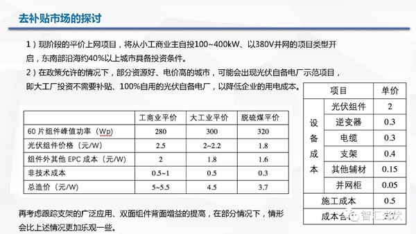 自發(fā)自用、余電上網(wǎng):10GW的規(guī)模指標(biāo),531之后并網(wǎng)無(wú)國(guó)家補(bǔ)貼(地方政府想辦法?),要參與競(jìng)價(jià)