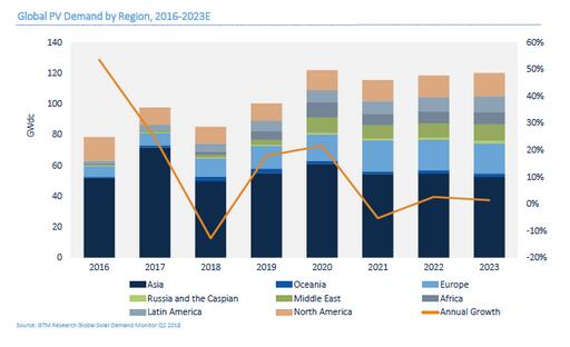 2018年全球太陽(yáng)能季度需求趨勢(shì)