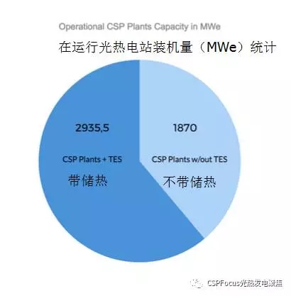 近年來,配有儲熱系統(tǒng)的光熱發(fā)電技術(shù)越來越受到青睞,CSP+儲熱的組合可以在有效利用太陽能資源發(fā)電的基礎(chǔ)上,維持夜間的持續(xù)發(fā)電,穩(wěn)定電力輸出。如下圖所示,在運行的光熱電站中配置儲熱系統(tǒng)的占比超過60%。如今