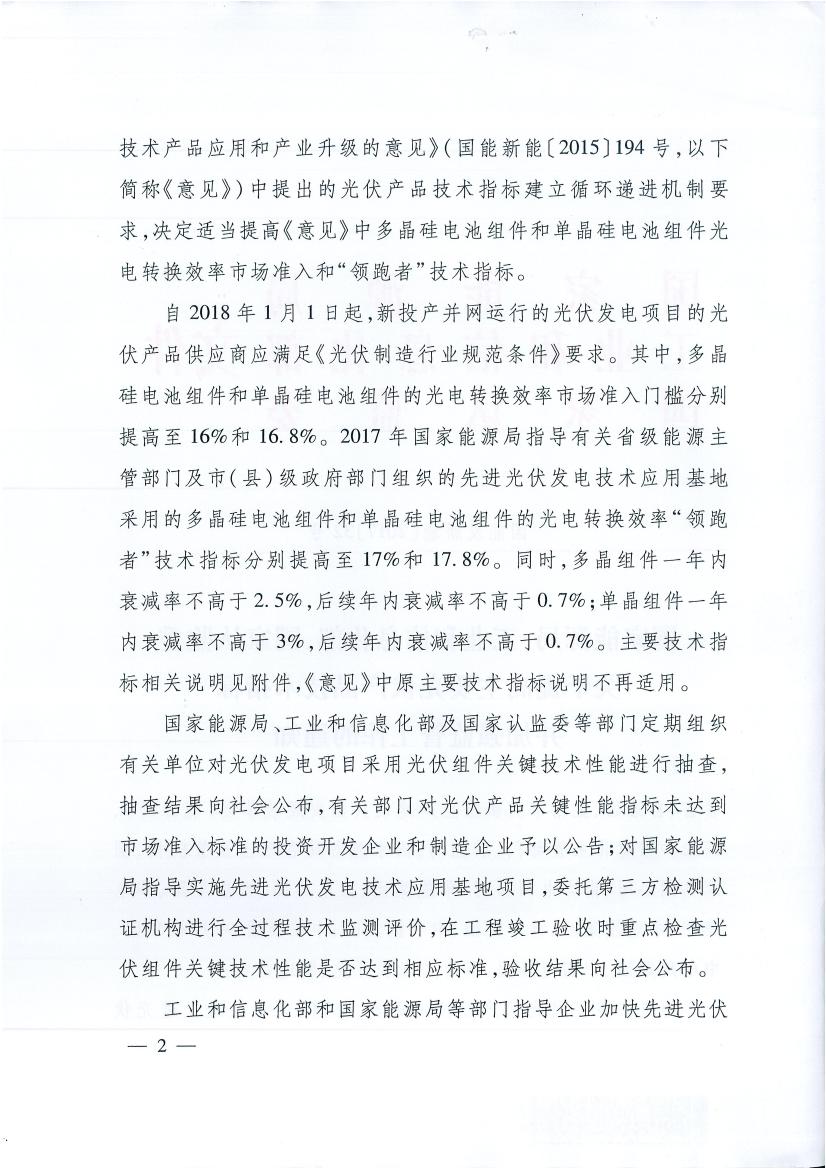 能源局提高主要光伏產(chǎn)品技術(shù)指標(biāo)