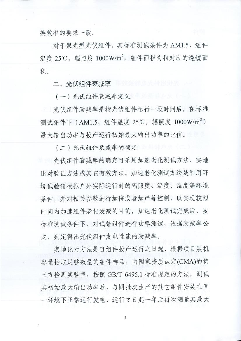 同時(shí),多晶組件一年內(nèi)衰減率不高于2.5%,后續(xù)年內(nèi)衰減率不高于0.7%;單晶組件一年內(nèi)衰減率不高于3%,后續(xù)年內(nèi)衰減率不高于0.7%;單晶組件一年內(nèi)衰減率不高于3%,后續(xù)年內(nèi)衰減率不高于0.7%。國(guó)家能源局、工信部及國(guó)家認(rèn)監(jiān)委等部門定期組織有關(guān)單位對(duì)光伏發(fā)電項(xiàng)目采用光伏組件關(guān)鍵技術(shù)性能進(jìn)行抽查,抽查結(jié)果向社會(huì)公布。有關(guān)部門對(duì)光伏產(chǎn)品關(guān)鍵技術(shù)性能未達(dá)到市場(chǎng)準(zhǔn)入標(biāo)準(zhǔn)的投資開發(fā)企業(yè)和制造企業(yè)予以公告;對(duì)國(guó)家能源局指導(dǎo)實(shí)施先進(jìn)光伏發(fā)電技術(shù)應(yīng)用基地項(xiàng)目,委托第三方檢測(cè)認(rèn)證機(jī)構(gòu)進(jìn)行全過程技術(shù)監(jiān)測(cè)評(píng)價(jià),在工程竣工驗(yàn)收時(shí)重點(diǎn)檢查光伏組件關(guān)鍵技術(shù)性能是否達(dá)到相應(yīng)標(biāo)準(zhǔn),驗(yàn)收結(jié)果向社會(huì)公布。