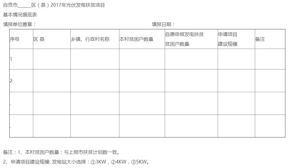 請各區(qū)縣發(fā)改局、扶貧移民辦(局)于8月28日前以聯(lián)合正式文件上報2017年光伏扶貧項目摸底調查表連同電子版一并分別報送市發(fā)展改革委、市扶貧移民局。