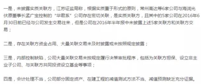 9月14日,*ST海潤(rùn)(即“海潤(rùn)光伏”)發(fā)布公告表示,又一次收到了證監(jiān)會(huì)的行政監(jiān)管決定書,被處罰的原因有四點(diǎn):