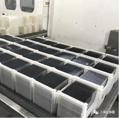 切割完畢的一排排硅片