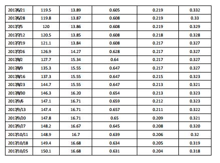2017年9-10月份多晶硅價(jià)格持穩(wěn)微漲,從9月初的14.71萬(wàn)元/噸,上漲到10月底的15.01萬(wàn)元/噸,增幅僅有2.0%,相比7-8月份的價(jià)格漲幅21.9%增速有所放緩。10月份多晶硅均價(jià)14.95萬(wàn)元/噸,環(huán)比增加1.3%。