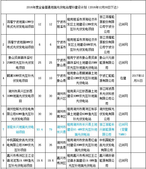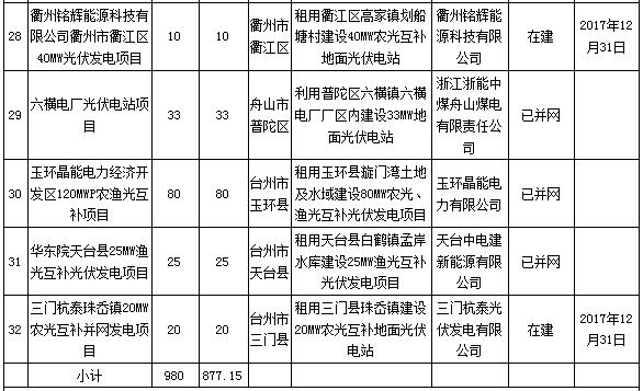 浙江省2016年普通地面光伏電站建設(shè)計劃調(diào)整和2017年度光伏指標(biāo)分配方案