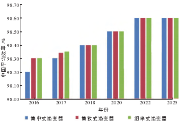 2016~2025年不同類(lèi)型逆變器的中國(guó)最大效率變化趨勢(shì)預(yù)測(cè)
