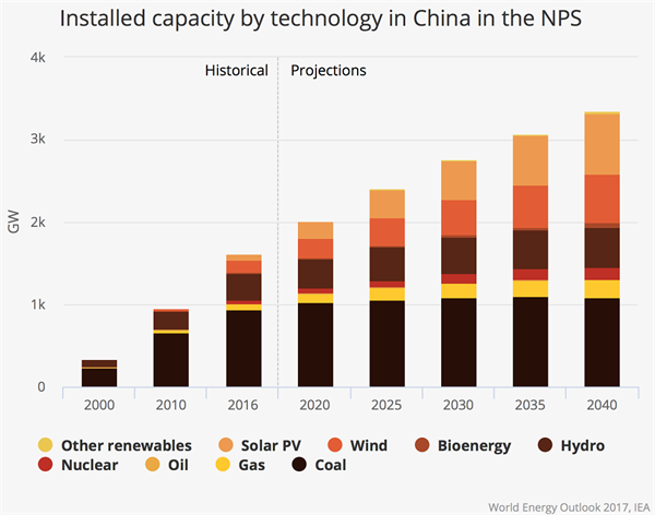 到2040年,預計中國將增加的發(fā)電量相當于整個美國電力系統(tǒng)的發(fā)電量。國際能源機構預計,根據目前的政策,中國的煤炭消費量在未來幾年將達到高峰,到2040年將下降15%。中國的電動車投資也將占全球的40%以上。