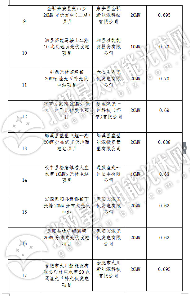 安徽省2017年集中式光伏電站新增建設(shè)規(guī)模配置項目中標(biāo)公示