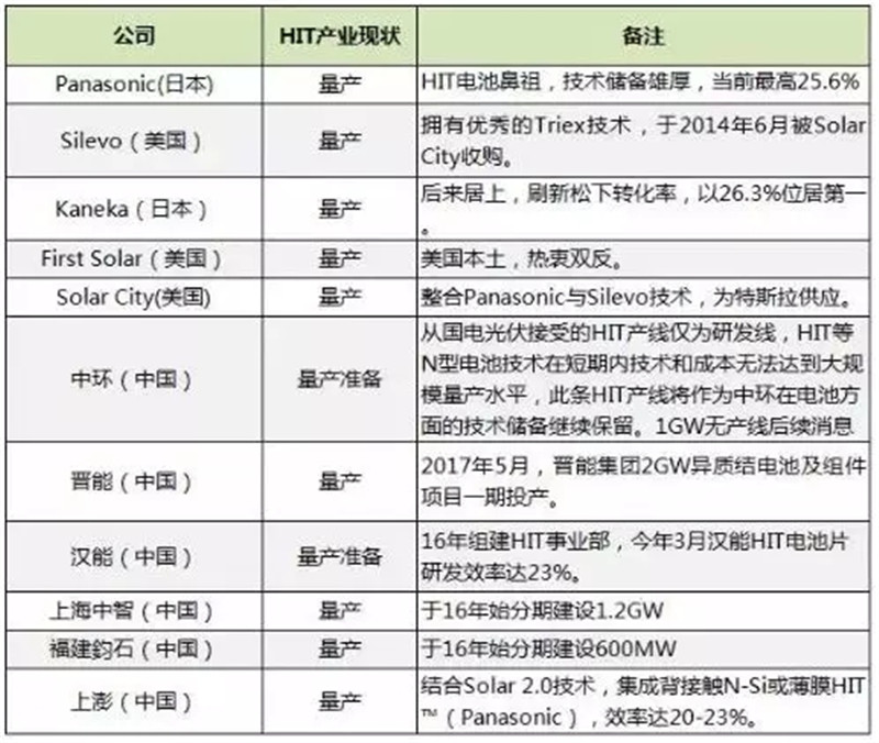 HIT代表高效光伏電池未來(lái),中環(huán)、晉能等都對(duì)該技術(shù)做了大量?jī)?chǔ)備和研發(fā)。而漢能基于在薄膜電池領(lǐng)域的研發(fā)經(jīng)驗(yàn),于2016年成立HIT(Hetero-junctionwith Intrinsic Thin-layer,高效硅異質(zhì)結(jié)太陽(yáng)能電池)事業(yè)部,專注于制造HIT整線生產(chǎn)線。