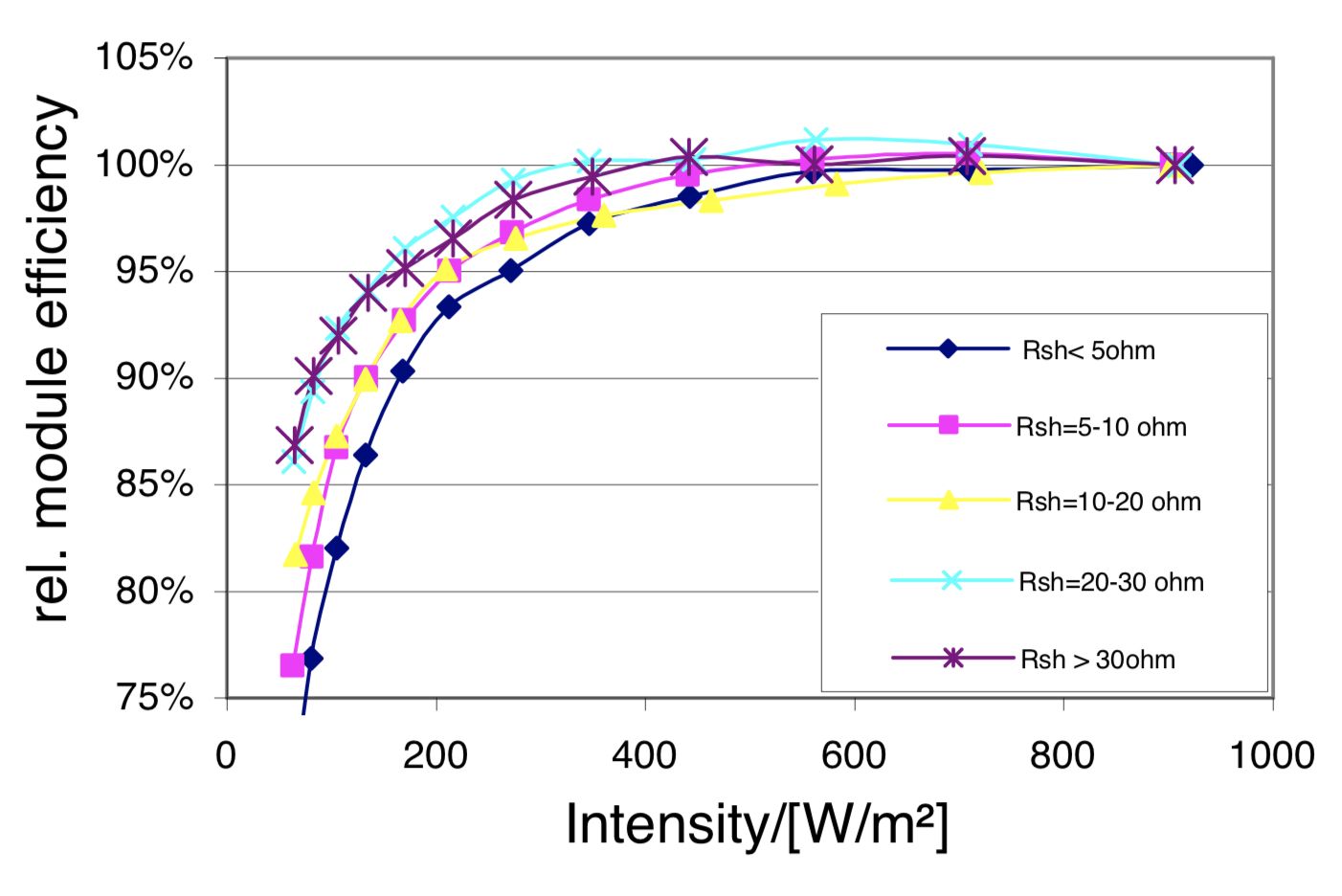 1.并聯(lián)電阻。弱光就是入射光強(qiáng)比較弱。雖然不影響短路電流,但是會影響開路電壓。理想情況下,開路電壓跟入射光強(qiáng)成一個(gè)對數(shù)關(guān)系。