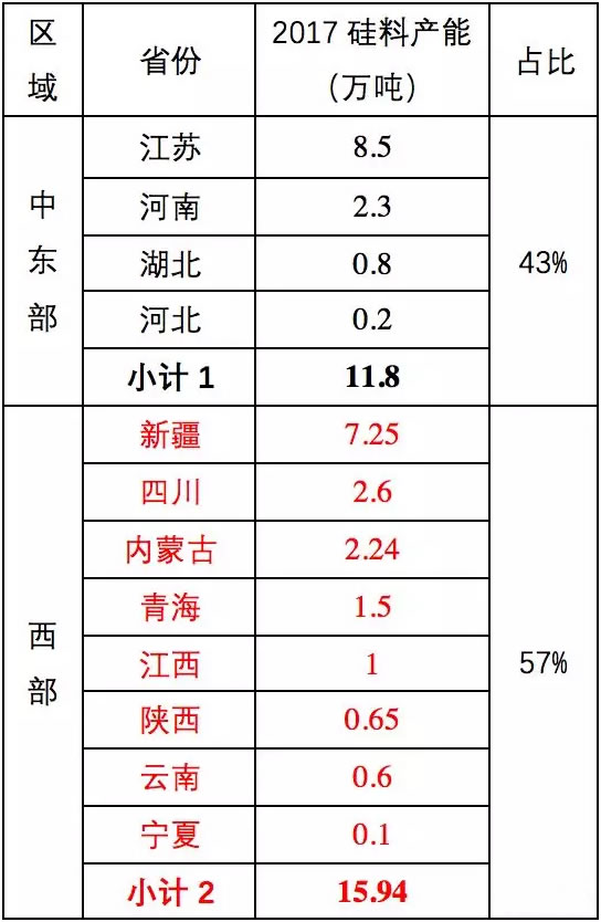 表5:2017年底各省硅料產(chǎn)能分布情況