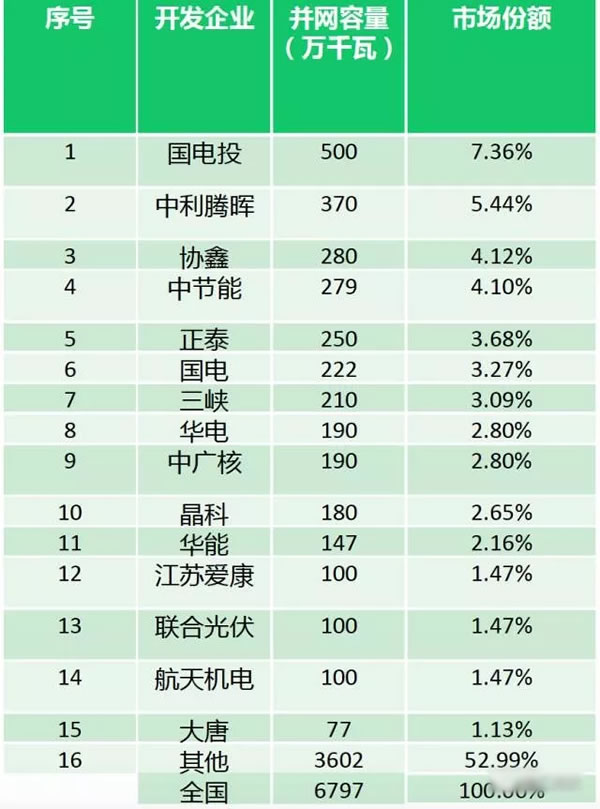 注:2016年光伏開(kāi)發(fā)企業(yè)的排名用的是水利總院一些數(shù)據(jù),跟各家已經(jīng)上市的光伏資產(chǎn)持有公司的公報(bào)有一定的出入