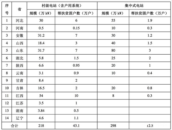 在此基礎(chǔ)上,2016年多個(gè)省份的能源局聯(lián)合當(dāng)?shù)氐姆鲐毠ぷ餍〗M,將“光伏扶貧”作為農(nóng)村脫貧的重要方式。2016年,在14個(gè)省份實(shí)施5168萬(wàn)kW光伏扶貧項(xiàng)目,幫扶貧困群眾55.6萬(wàn)戶,如下表所示。