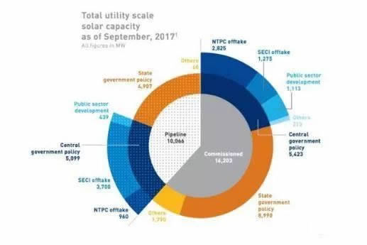 據(jù)我們知道,印度是個人口大國,并以高科技以及廉價勞動力而聞名世界,同時也是經(jīng)濟實力發(fā)展不平均以及生產(chǎn)力相對落后的國家,在一些地區(qū)用電困難以及用電成本過高,導(dǎo)致國民的生活質(zhì)量一直難以改善。這就為光伏發(fā)電在印度的推廣提供了契機,加上光伏建設(shè)的成本大幅下降以及政府的重視,使得印度的光伏裝機量在2017年底累計裝機量已達接近20GW,成為一個光伏大國!