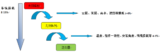 約1-2%,總損耗約為8-13%(此處所說的系統(tǒng)損耗不包括逆變器后面交流線路損耗部分)。