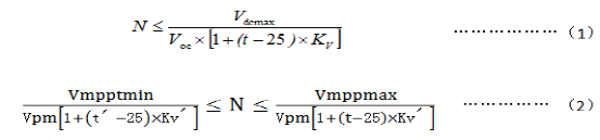 根據(jù)以上可知,Voc=38.1V,Vpm=31.1V,Vmpptmin=450V,Vmpptmax=800V,Kv= Kv′=-0.31%/℃,運(yùn)用上述公式得出結(jié)果