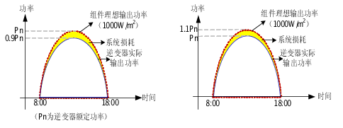 如圖2所示,可通過將容配比從1:1提升到1.1:1,使得逆變器在光照最好的時(shí)候能達(dá)到滿載輸出,提高了逆變器的利用率。