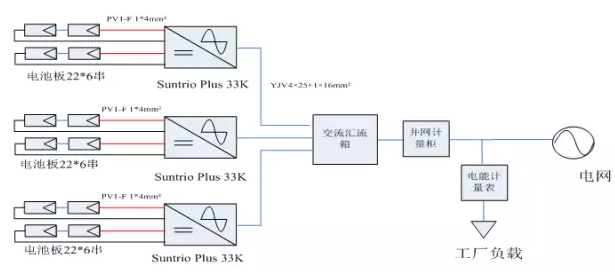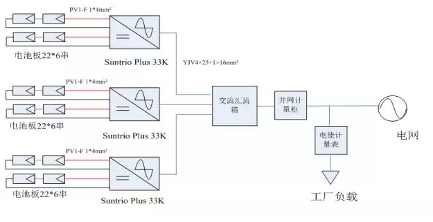 33kW逆變器配置YJV 4×25+1×16mm2銅芯線纜即可滿足載流要求。