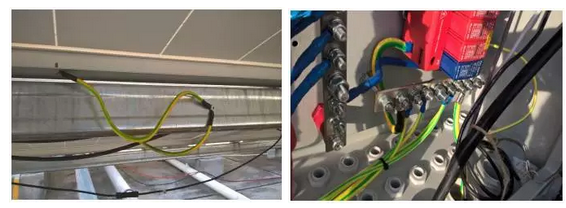 配電柜:使用接地線連至接地排上或者就近框架接地。