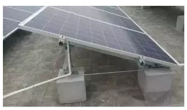 水泥平屋頂固定支架;水泥配重塊常規(guī)尺寸300*300*300mm;若當(dāng)?shù)丶撅L(fēng)較多,需適當(dāng)增大配重塊。