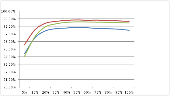 盛能杰科技SE 33KTL在不同負(fù)載率狀況下的轉(zhuǎn)換效率曲線